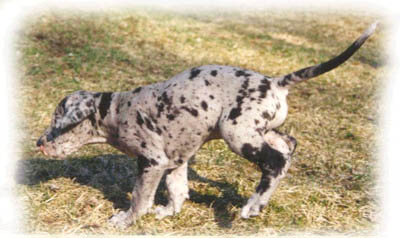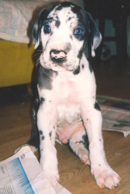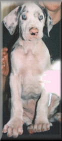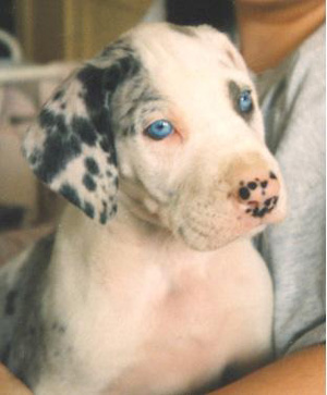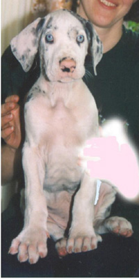 puhdas merle ja pentueen suurin poika. Körmy suorastaan rakastaa